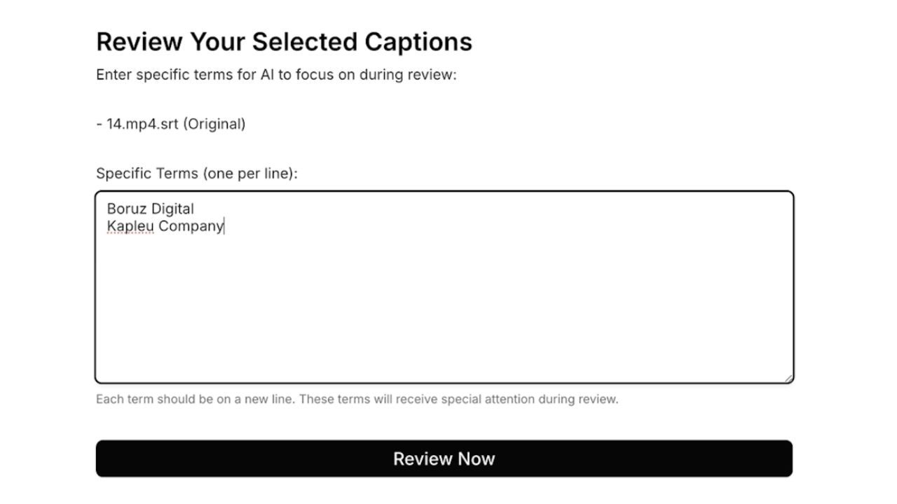 Got specialized terms or complex names? Use our AI review feature to confirm or correct terms for a more accurate transcript/subtitle