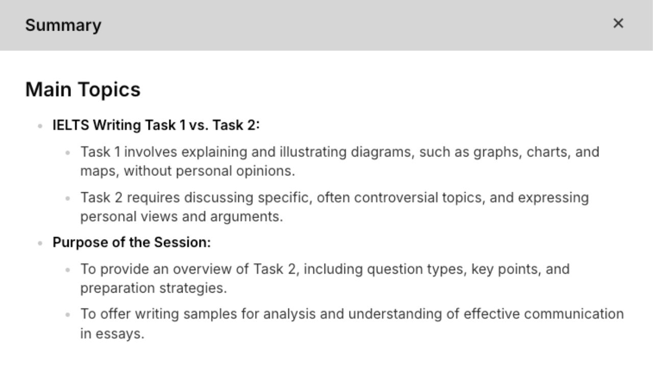 Use our summarization tool to turn your transcripts into concise summaries with key points, highlighting the crucial points and insights.